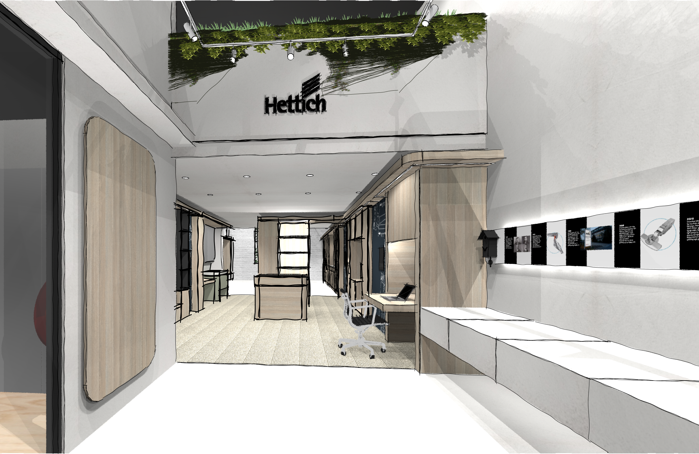 Our vision? To reimagine the concept into a fully immersive environment — one that not only displays Hettich’s innovative hardware solutions but also serves as a multifunctional space for events, demonstrations, and training sessions.