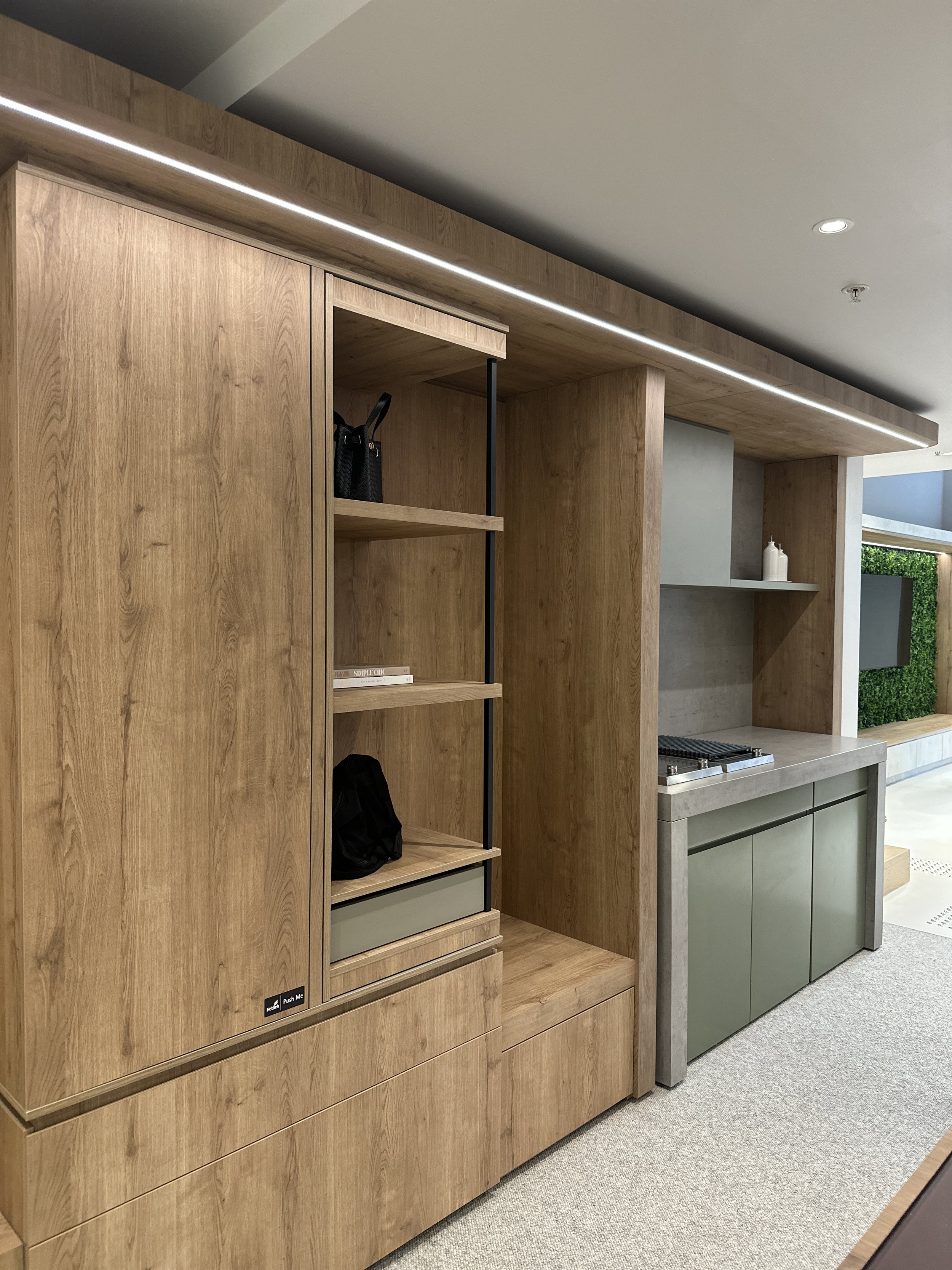 Our vision was to reimagine the concept into a fully immersive environment — one that not only displays Hettich’s innovative hardware solutions but also serves as a multifunctional space for events, demonstrations, and training sessions.