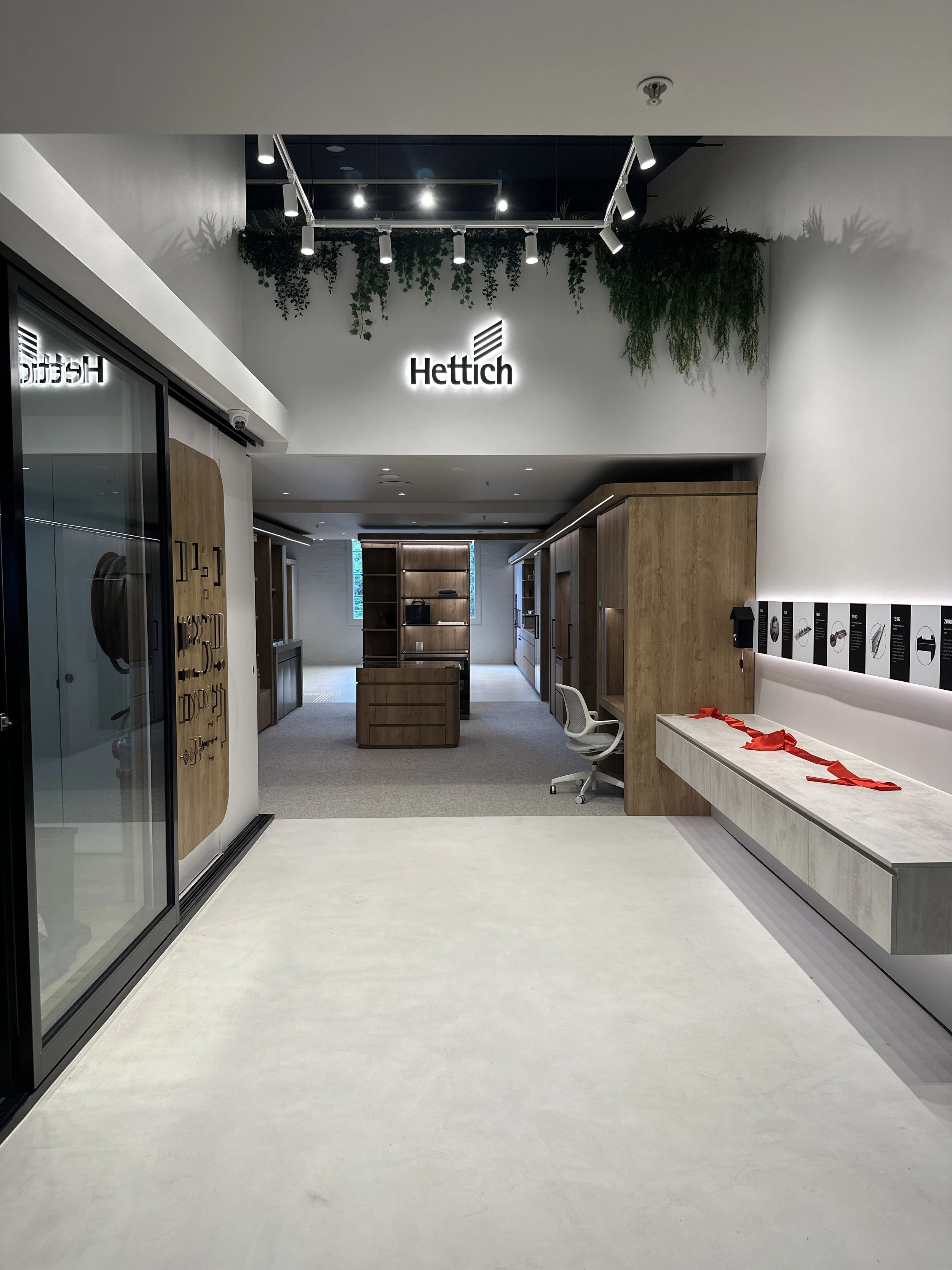 Each zone within the Experience Centre was carefully planned to highlight specific product ranges while maintaining a cohesive brand narrative. The result is a contemporary, flexible space that allows Hettich to host clients, architects, and suppliers in an environment that reflects their commitment to quality, innovation, and design excellence.